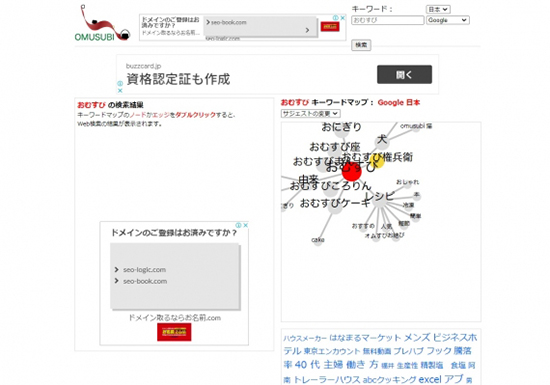 「OMUSUBI」とは無料のキーワードマップツールです。サジェストに合せて、